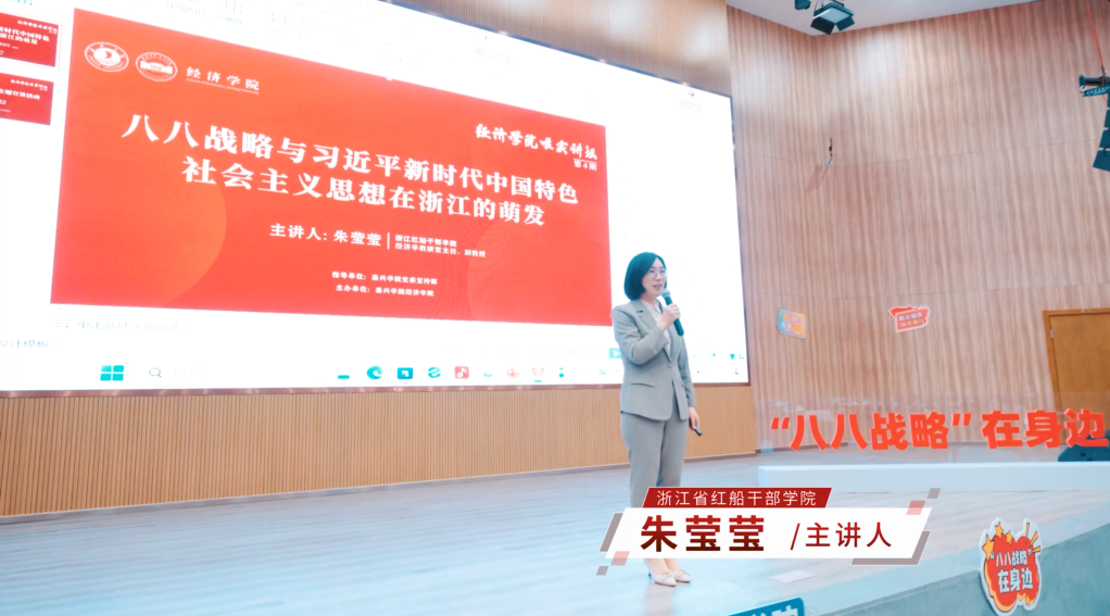 宣讲活动中,来自嘉兴学院大学生共同富裕宣讲团宣讲员陈思思和俞芝怡分别作题为“从水出发 看蝶变嘉兴”“统筹城乡 开启幸福路”的主题宣讲,通过“让青年人讲给青年人听”形式的“新型思政课”,勉励青年大学生学习“八八战略”高瞻远瞩的格局、视野以及蕴含的科学方法论,争做敢作为、能作为、有作为的新青年!
