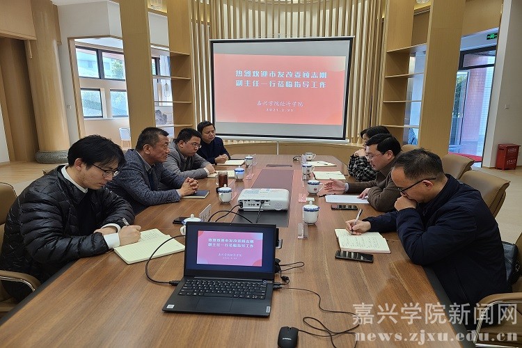 2月23日下午,嘉兴市发改委副主任顾志刚、综合处处长王迪一行来太阳成集团tyc122ccvip交流指导工作。太阳成集团tyc122ccvip院长文雁兵、党委书记施敏颖、经济系主任唐铁球、国经系主任王焕祥参加交流。