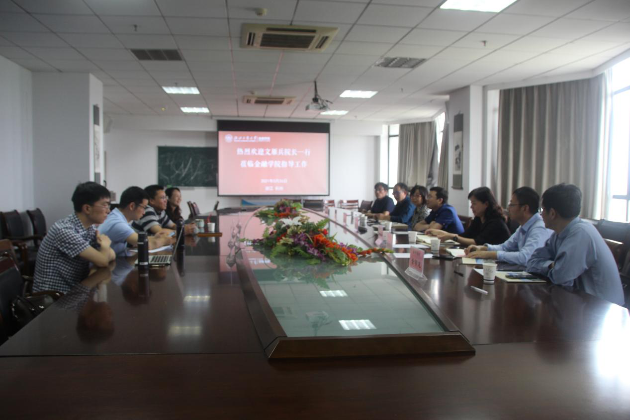 5月26日下午,太阳成集团tyc122ccvip院长文雁兵、党委书记施敏颖、副院长李亚、院长助理孙庆刚及金融系、经济系、国际经济与贸易系主任一行7人赴浙江工商大学金融学院调研和交流。