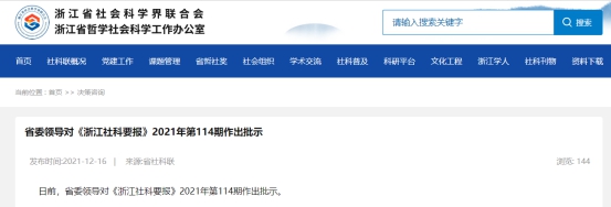 近日,浙江省社会科学界联合会(浙江省哲学社会科学办公室)官网公布,我院副教授、校中国共同富裕研究院研究员胡晓辉老师刊登在《浙江社科要报》2021年第114期的成果要报《加快培育浙江大湾区医疗装备制造业集群的对策建议》获省委领导批示。
