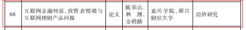 我院陈荣达教授申报的《互联网金融特征、投资者情绪与互联网理财产品回报》(《经济研究》2019年第7期)获得基础理论研究优秀成果奖二等奖。