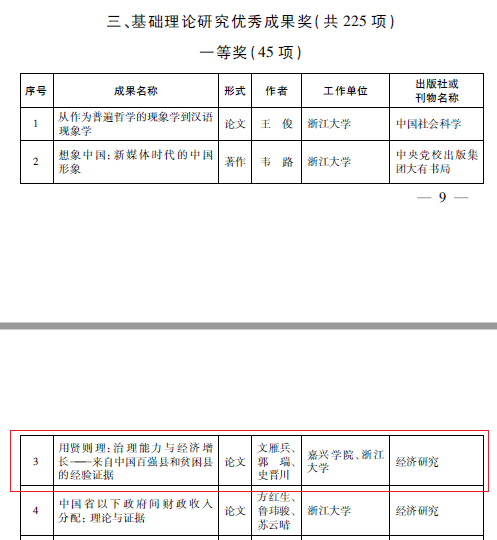 我院文雁兵教授申报的《用贤则理:治理能力与经济增长——来自中国百强县和贫困县的经验证据》(《经济研究》2020年第3期)获得基础理论研究优秀成果奖一等奖。