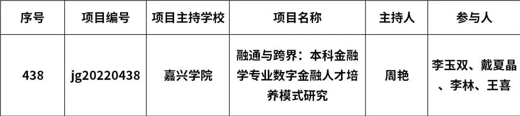 根据《浙江省教育厅办公室关于公布普通本科高校“十四五”教学改革项目的通知》(浙教办函〔2022〕389号),我院周艳副教授主持的《融通与跨界:本科金融学专业数字金融人才培养模式研究》获批立项项目。