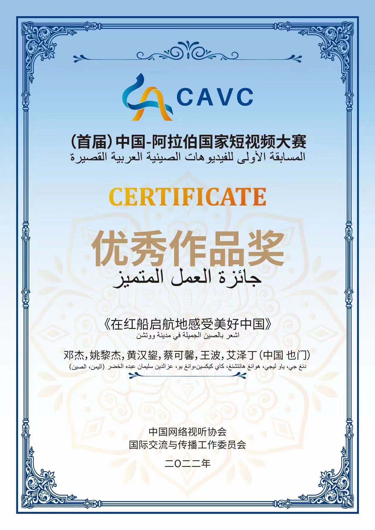 【经院喜报】我院2020级国际生获得(首届)中国—阿拉伯国家短视频大赛优秀作品奖