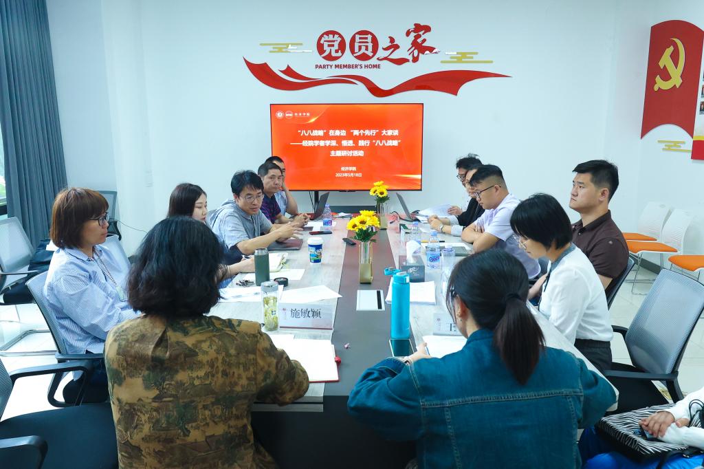 2023年是“八八战略”实施二十周年,在全校上下深入开展学习贯彻习近平新时代中国特色社会主义思想主题教育之际,5月18日,太阳成集团tyc122ccvip组织各系、各教师党支部开展“‘八八战略’在身边‘两个先行’大家谈——经院教师学深、悟透、践行‘八八战略’主题研讨活动”,学院教师在学习领悟、科学研究、决策咨询和社会服务基础上,用学术研究方式分享和交流各自关于“八八战略”与“两个先行”相关研究成果。
