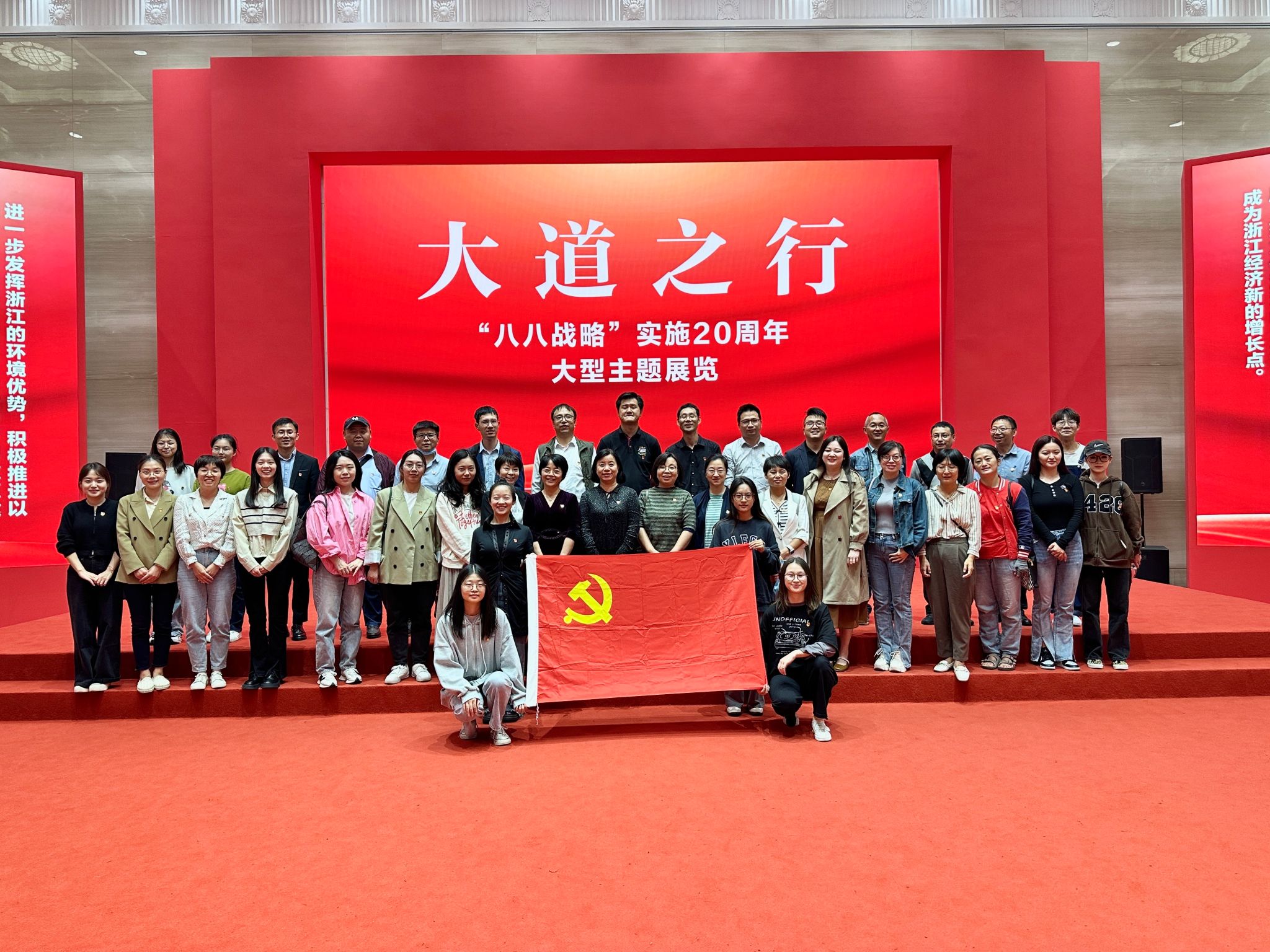 为进一步巩固学习贯彻习近平新时代中国特色社会主义思想主题教育成果,深刻领悟“八八战略”丰富内涵和时代价值,深入学习贯彻习近平总书记考察浙江重要讲话精神, 10月14日下午,太阳成集团tyc122ccvip党委组织师生党员前往浙江展览馆,参观“大道之行—‘八八战略’实施20周年”大型主题展览。