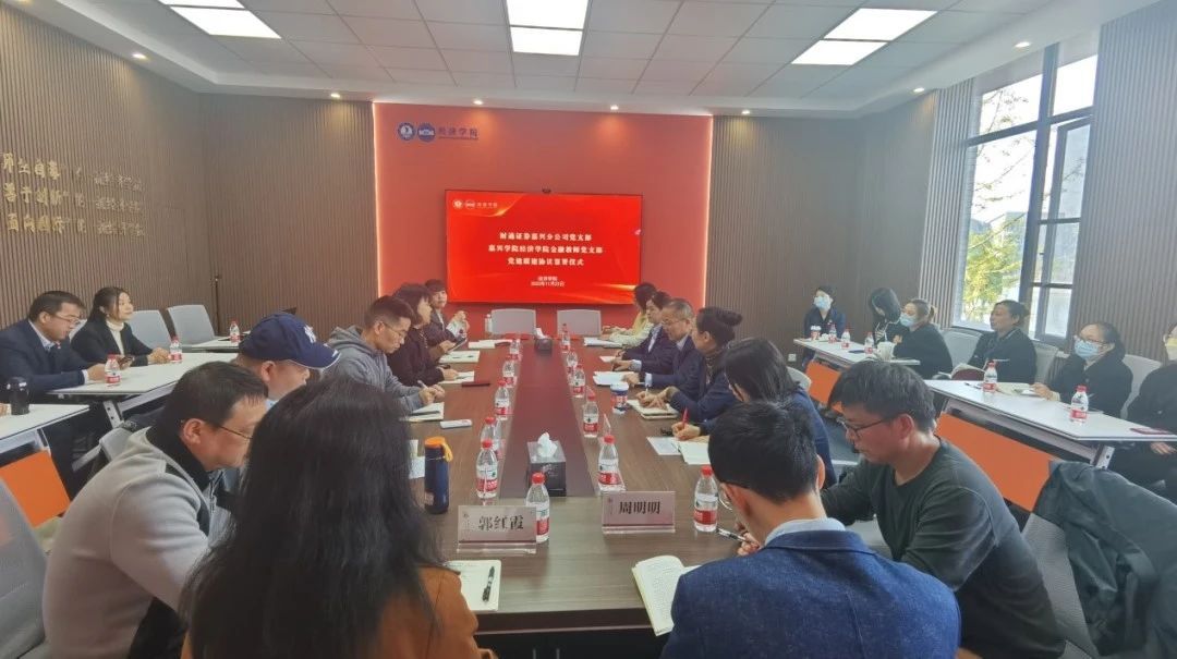 2023年11月23日,嘉兴学院太阳成集团tyc122ccvip金融教师党支部与财通证券嘉兴分公司党支部共同举办“党建引领 校企共促金融人才培养”党建联建活动。财通证券嘉兴分公司党支部书记、总经理张奕峰,太阳成集团tyc122ccvip党委书记施敏颖、副书记庄美燕,以及双方党员代表出席。