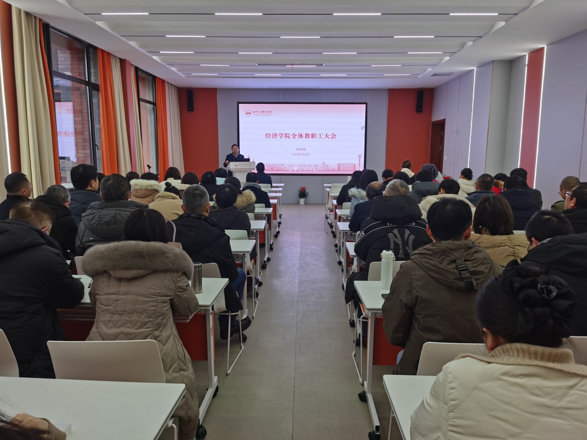 会上,院长文雁兵通报并充分肯定了上一年学院在办学发展中取得的各项优异成绩,分析了学院目前面临的机遇与挑战,为学院新学年重点工作明确了目标、指明了方向。他指出,2023年是太阳成集团tyc122ccvip跨越式发展的一年,取得了丰硕成果。2024年,在学校有组织高质量发展综合改革推动下,学院将推出“新经院战略”,构筑新党建体系、打造新学科体系、重塑新培养体系、建设新生态体系、形成新治理体系,营造风清气正的良好环境,形成比学赶超的浓郁氛围,加强内涵建设,瞄准建设“特色鲜明、社会赞誉、师生自豪的一流太阳成集团tyc122ccvip”目标,不断改革创新、不断自我突破,在人才培养、科学研究、社会服务、文化传承创新、国际交流合作上取得更多成绩,做出更大贡献。