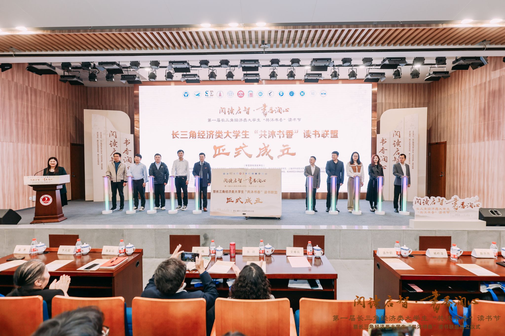 成立仪式上,联盟单位代表共同启动长三角经济类大学生“共沐书香”读书联盟,共同翻开首届“共沐书香”读书节崭新的篇章。