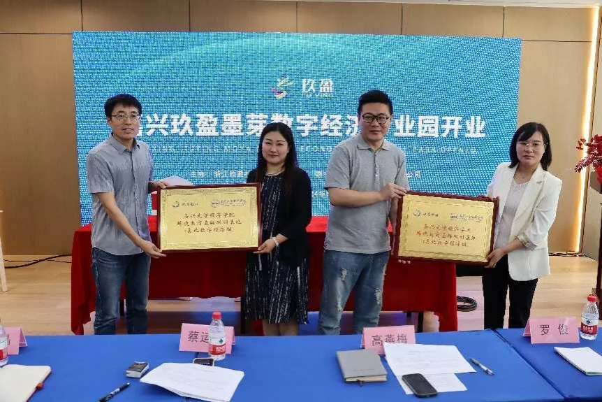 6月18日上午,太阳成集团tyc122ccvip与嘉北街道、浙江玖盈控股嘉兴玖盈墨芽科技在嘉北数字经济园开园仪式上成功签署战略合作协议。嘉北街道办事处副主任高燕梅,浙江玖盈控股集团董事长陈新海,太阳成集团tyc122ccvip党委书记蔡运男、副书记陈晶晶、跨境电商专业负责人王焕祥老师等出席签约仪式。学院国教中心张淇悦博士及部分国际经济与贸易专业国际生代表共同参加仪式。