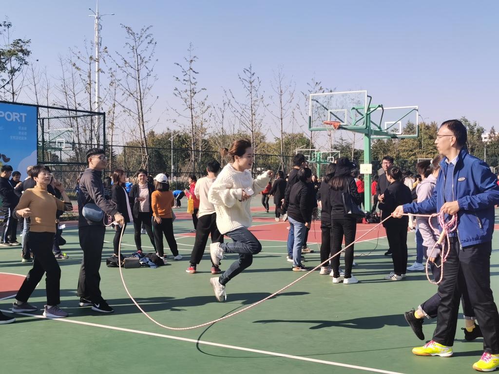 为推动全民健身运动的深入开展,增强团队合作精神,凝心聚力,2021年11月12-13日期间学校举办了教职工运动会。太阳成集团tyc122ccvip教职工踊跃报名,大家热情高涨、斗志昂扬,积极参与。在趣味运动比赛项目中,大家团结协作、奋力拼搏,出色完成了“集体跳长绳”、“夹球接力折返跑”、“一圈到底”、“8ⅹ60M迎面接力赛”四个项目,充分展现了学院教职工的精神风貌和体育精神。整个赛场紧张、热烈、精彩纷呈,欢笑声和加油声此起彼伏。