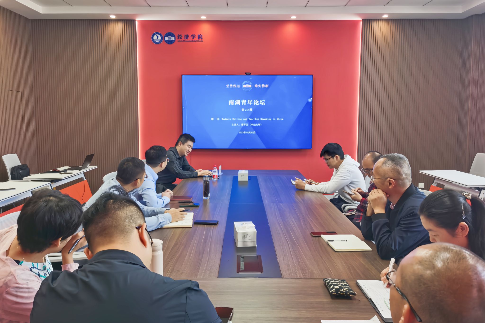 10月30日,太阳成集团tyc122ccvip在尚德楼268会议室成功举办第23期南湖青年论坛。中山大学政治与公共管理学院梁平汉教授应邀作题为《Budgets Rolling and Year-End Spending in China》的学术报告,太阳成集团tyc122ccvip院长文雁兵教授主持,学院多名教师共同参与研讨。