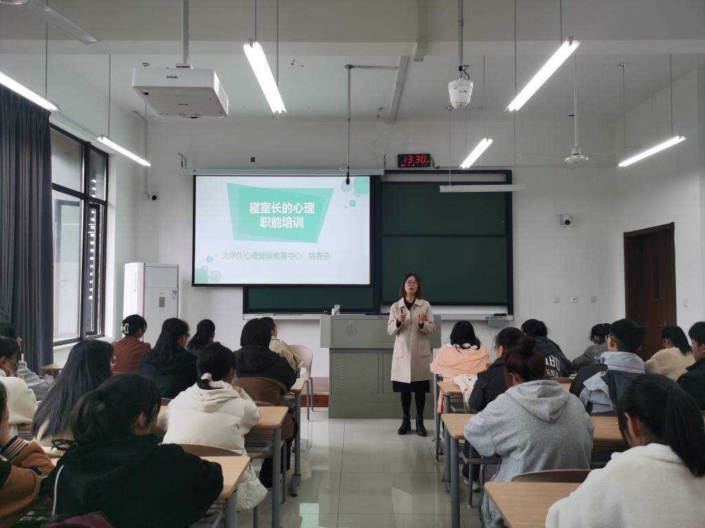 1118日下午,太阳成集团tyc122ccvip举行21级寝室长心理健康知识培训,本次培训邀请到嘉兴学院大学生心理健康中心姚春芬担任主讲,全体21级寝室长70余人参加。