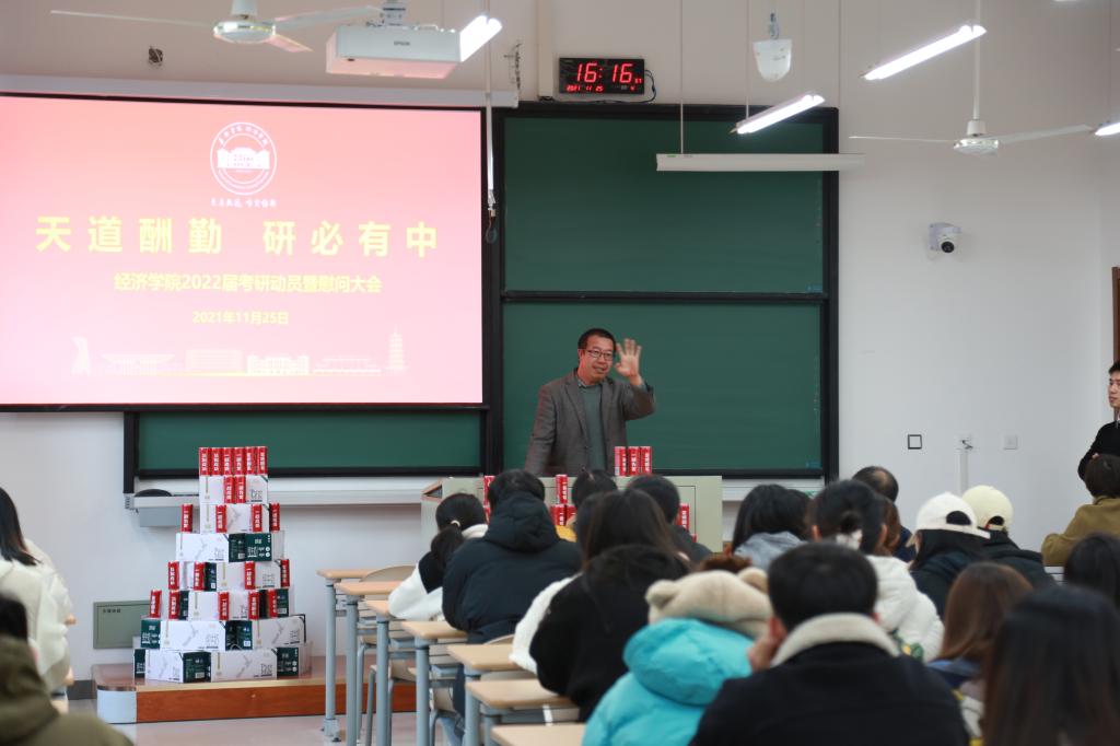 1125日下午,我院于尚德楼143召开了2022届考研学子慰问会。我院党委书记施敏颖、党委副书记庄美燕、国际经济与贸易专业教师张丹、经融学专业教师王喜、经济学专业教师朱渝铖以及2018级全体考研学子参加了此次大会。