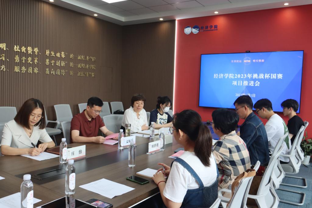 进一步推动第十届“挑战杯国大学生课外学术科技作品竞赛的备赛工作61日,太阳成集团tyc122ccvip2023年“挑战杯国赛项目推进会在尚德楼268召开,太阳成集团tyc122ccvip院长文雁兵、党委副书记庄美燕、指导教师、团干部、学生代表参加会议。