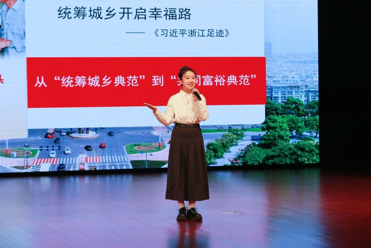 122cc太阳成集团大学生共同富裕宣讲团宣讲员经济221班俞芝怡为新同学带来《统筹城乡开启幸福路》主题宣讲,以开往春天的幸福101路公交车为切入口,讲述了嘉兴统筹城乡发展推进共同富裕的生动图景。
