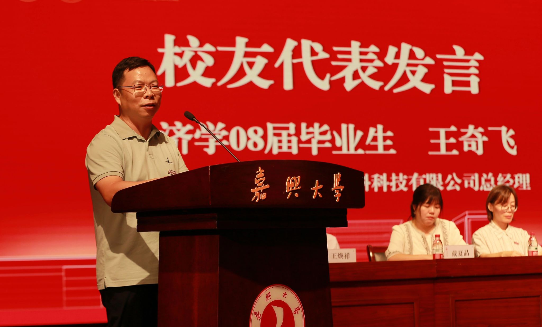 经济学专业08届毕业生,2022年度最美浙江人最美国企奋斗者,2024年度浙江省国有企业优秀共产党员,第二十三届浙江省优秀企业家,浙商中拓集团(浙江)新材料科技有限公司总经理王奇飞作为校友代表发言。他深情回顾了自己的求学奋斗之路,并与学弟学妹们分享了三点心得体会。一是要成为有志青年。将个人发展主动融入国家发展,了解宏观政策、关注行业需求才能有的放矢。二是要成为有识青年。当代大学生要具备自主学习的能力,不断更新知识体系,学习好课本知识的同时走出校园、走向社会,多了解社情民情,化课本知识为社会实践。三是要成为有恒青年。成功没有捷径,经过一步一步的跋涉、年年岁岁的积累,向着山巅一路进发。只要做到志识恒,断无不成之事!