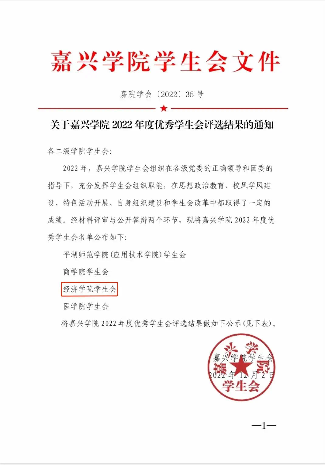 近日,在嘉兴学院2022年度优秀学生会评选中,经材料评审与公开答辩两个环节,我院学生会荣获“嘉兴学院2022年度优秀学生会”。