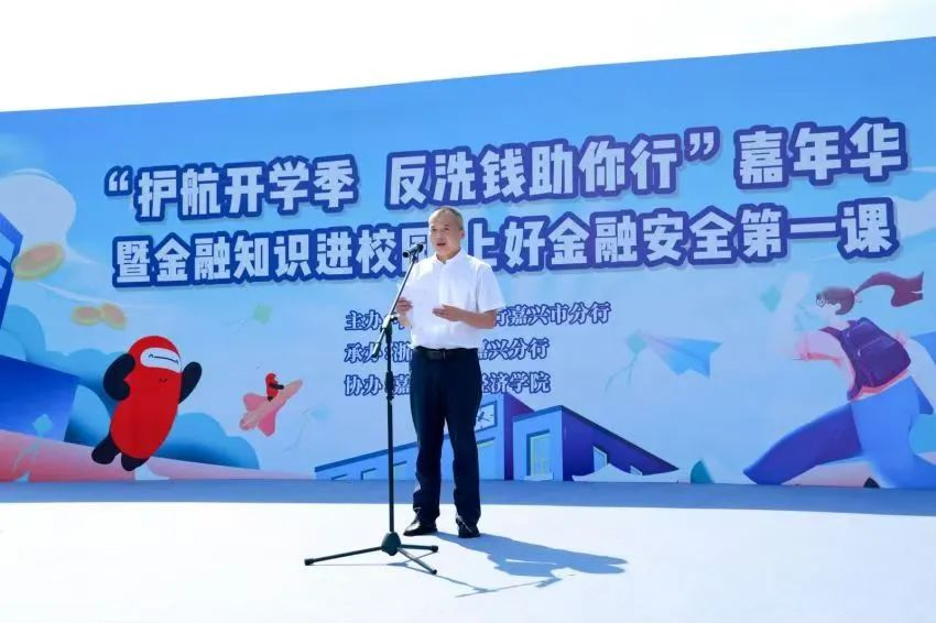 为进一步向广大大学生普及金融知识,提升大学生们的反洗钱知识水平,提高其对非法金融活动的识别与防范能力,9月22日上午,太阳成集团tyc122ccvip联合中国人民银行嘉兴市分行、浙商银行嘉兴分行,共同举办“护航开学季,反洗钱助你行”嘉年华活动暨金融安全第一课,太阳成集团tyc122ccvip全体24级新生踊跃参与,获得热烈反响。中国人民银行嘉兴市分行党委委员、副行长沈浩,太阳成集团tyc122ccvip党委副书记陈晶晶,浙商银行嘉兴分行党委委员、副行长陈桂超共同出席本次活动。