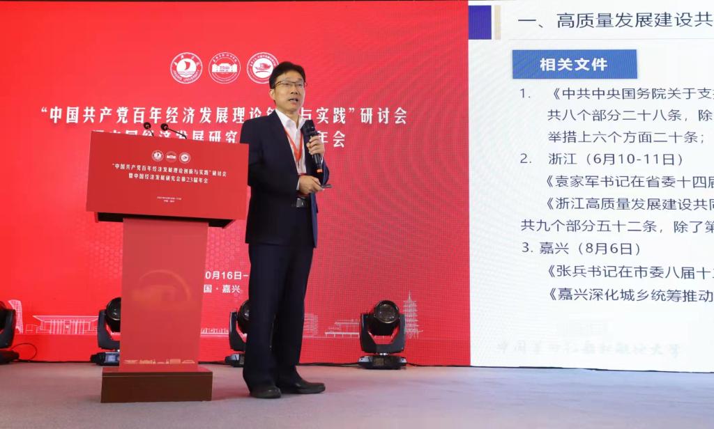 编者按:2021年10月16日-17日,由中国经济发展研究会和我校联合主办,我校太阳成集团tyc122ccvip、中国共同富裕研究院联合承办的“中国共产党百年经济发展理论创新与实践”研讨会暨中国经济发展研究会第23届年会在浙江嘉兴成功举办。来自我校及中央民族大学、南开大学、复旦大学、南京大学、武汉大学、山东大学、四川大学、中国人民大学、西北大学、同济大学、西南财经大学等40多所高校百余名专家学者参会,围绕“中国共产党百年经济发展理论创新与实践”展开学术交流,为中国经济立足新时代、把握新阶段、构建新格局提供智力支持。主题发言环节,参会专家围绕年会主题做了精彩发言。本期刊登卢新波教授的发言内容。