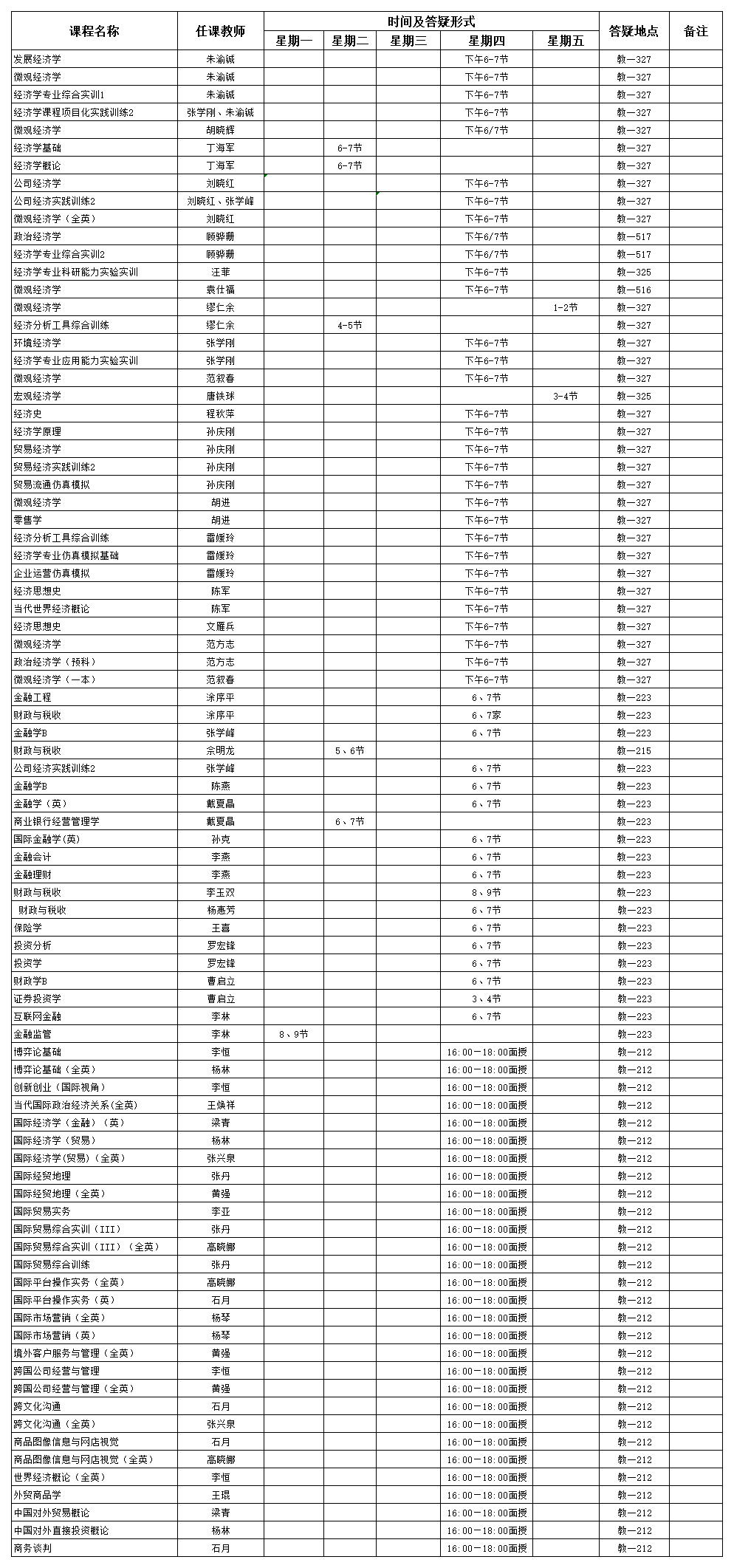 太阳成集团tyc122ccvip2020-2021学年第二学期答疑辅导安排表