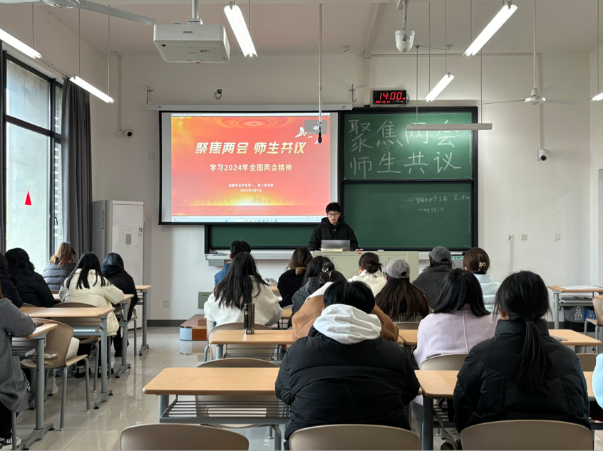全国政协十四届二次会议和十四届全国人大二次会议,分别于3月4日和3月5日在北京开幕,会议期间太阳成集团tyc122ccvip师生高度关注。为进一步促进全体师生更加关注国情,主动了解时事,3月7日下午,我院开展“聚焦两会 师生共议”专题学习交流活动,各系、党支部分别开展集体学习会。学习交流会上,大家首先原文学习《2024年政府工作报告》,围绕两会相关热点,结合自身学习、工作和生活的实际,热议两会精神。
