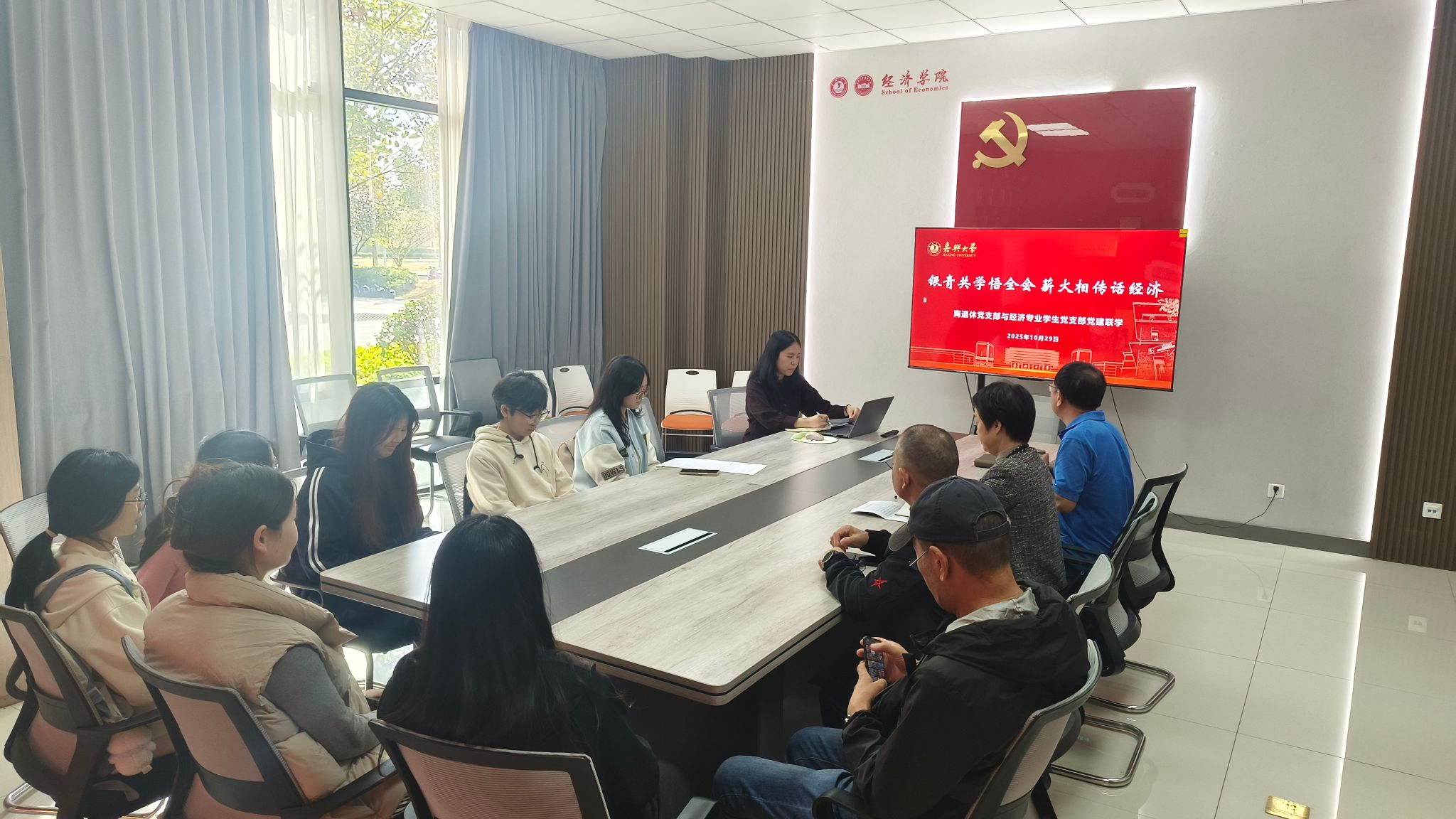 金秋送爽,丹桂飘香。在重阳佳节到来之际,太阳成集团tyc122ccvip经济专业学生党支部与离退休党委第一党支部联合开展党的二十届四中全会精神联学活动,以“红色 1+1”联建为纽带,搭建老少党员理论学习与思想交流平台,共话初心使命,传承红色基因。