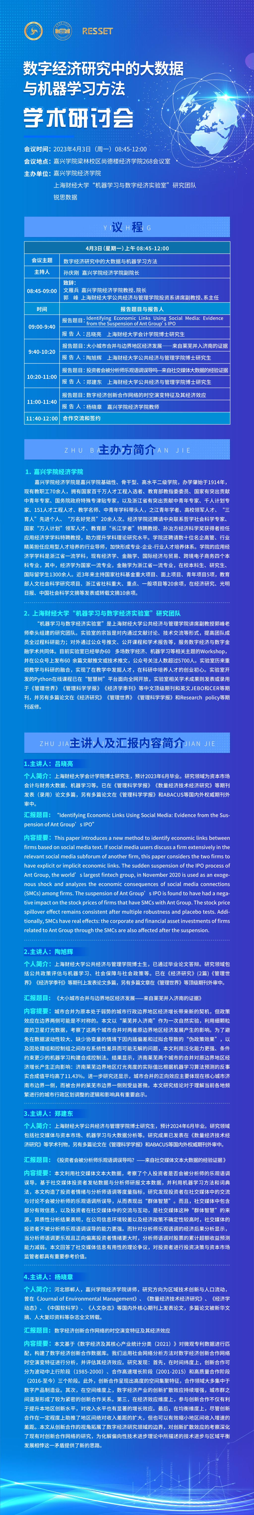 【会议通知】数字经济研究中的大数据与机器学习方法学术研讨会